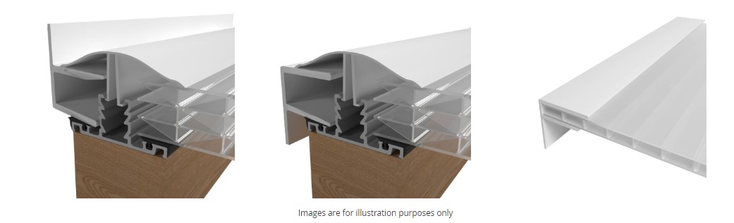 We recommend using the PVC F-Sections in conjunction with our snapdown rafter supported glazing bars. When used with the glazing bars, the PVC F-Section sits into the tracks and neatly snaps into the glazing bar base providing a weatherproof seal and finish.